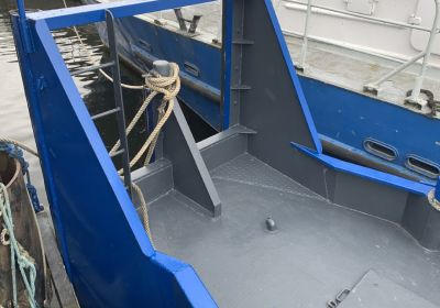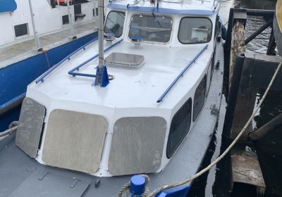 Road transportable push tugboat. Possibly in combination with small push/tug barges.