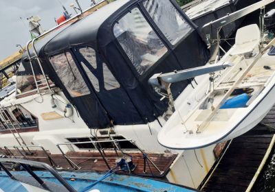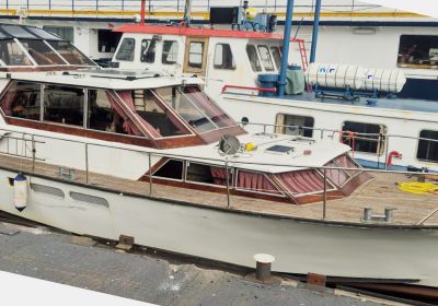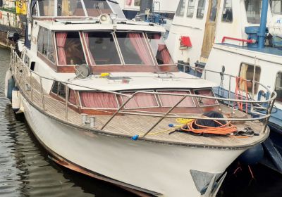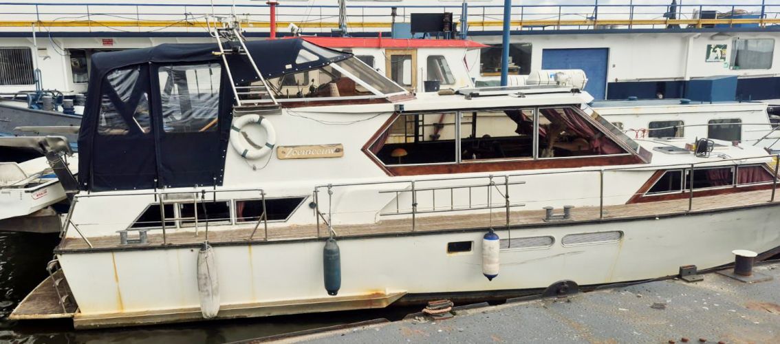 Dubbelschroefs Motojacht met nieuwe achtertent.