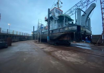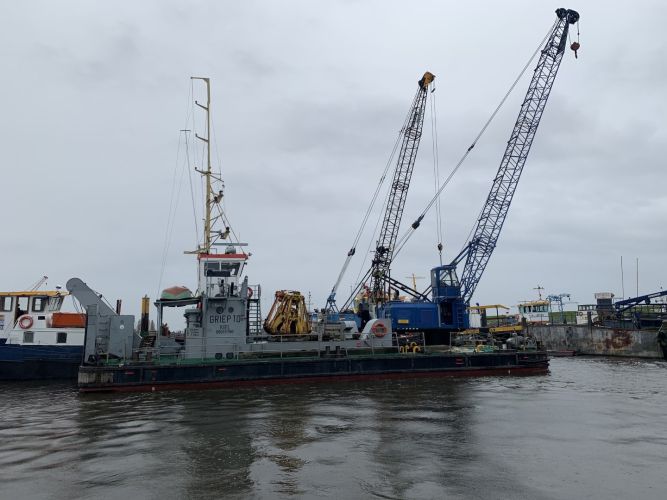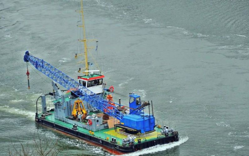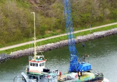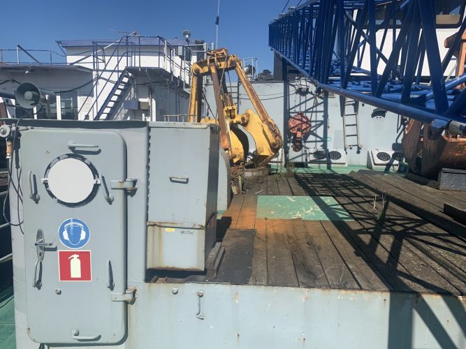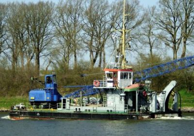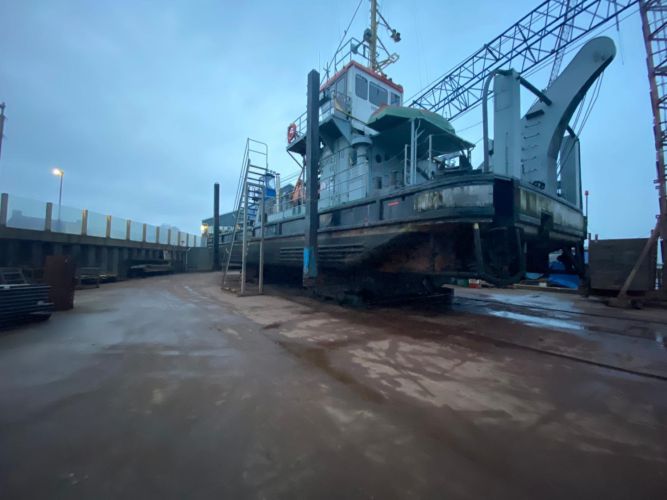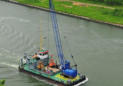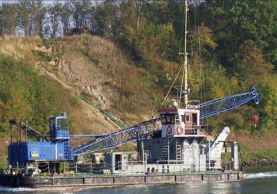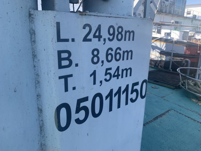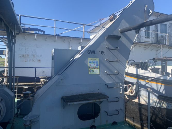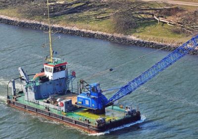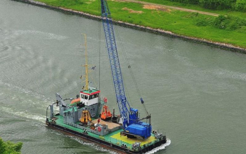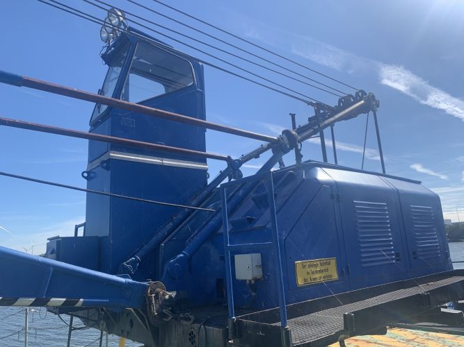 Degelijk en zwaargebouwd ponton, met twee Schottelroerpropellors en een Demag kraan.met CVO tot eind 2026.